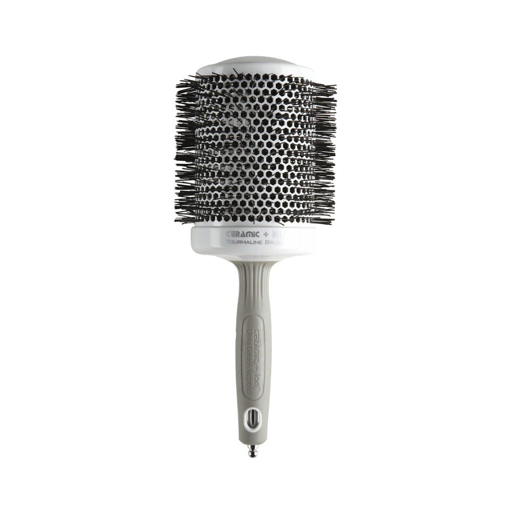 Cepillo revestido de cerámica. Se calienta más rápido y retiene el calor por más tiempo. Tecnología de iones de turmalina: Hidrata la cutícula. Agrega más brillo al cabello.