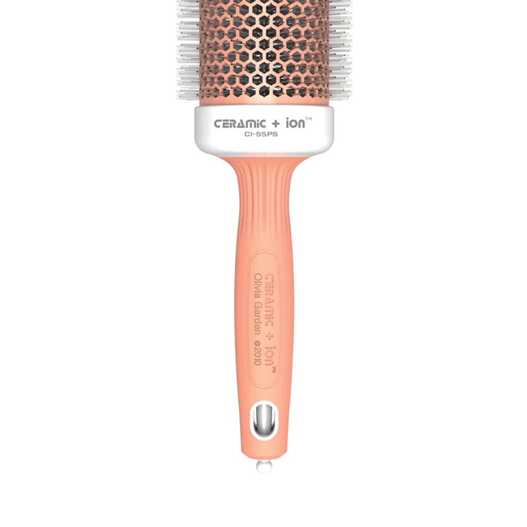 Con un diámetro de 55mm, es perfecto para crear volumen y ondas naturales, facilitando el secado y estilizado del cabello. La superficie cerámica protege la fibra capilar, evitando daños por el calor excesivo.