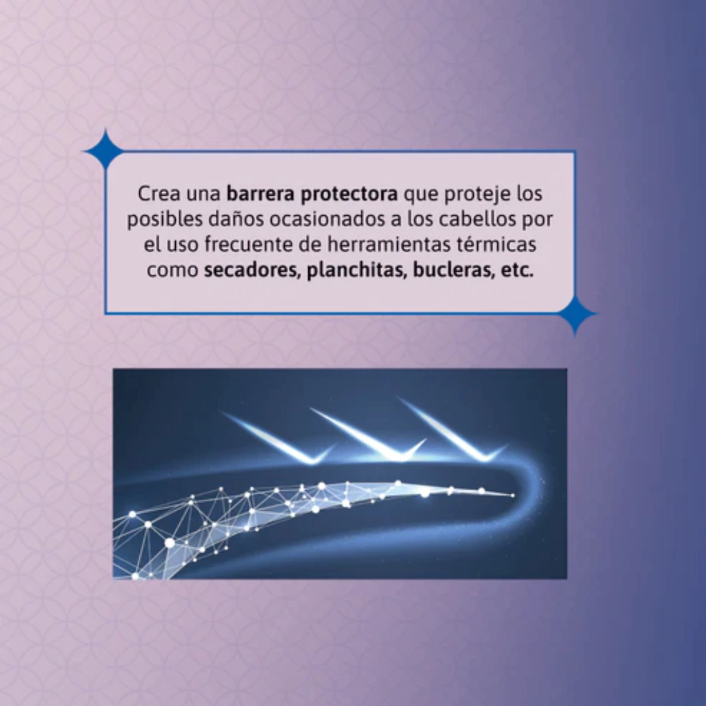 Pero eso no es todo. Su fórmula está enriquecida con D PANTENOL y KERATINA VEGETAL, ingredientes clave que van más allá de la protección. Ayudan a: